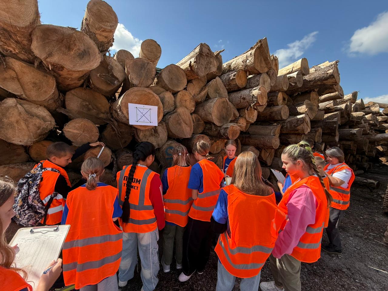 15 ребят из школы №8 из села Спасское погрузились в процессы деревообработки: измеряли древесину по ГОСТу, записывали измерения в специальную спецификацию (так называемую "точковку", так как в нее ставят точки при записи), познакомились с основами распиловки древесины и специальной подготовки лесопильных лент.